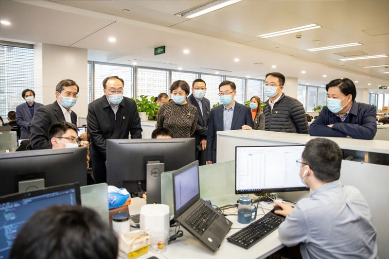中聯資產評估集團黨委書記、董事局主席王子林等公司黨委負責人和高管,陪同北京市委組織部副部長、市委“兩新”工委書記張革等領導,實地考察中聯資產評估集團黨員活動室以及智能評估、智能財稅等數字財經發展成果,并作匯報。