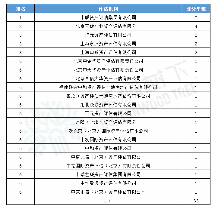 2020年1-6月,共有21家資產評估機構成功承辦32家并購重組項目評估業務。其中,東方創業聘請兩家評估機構,故總數為33家。