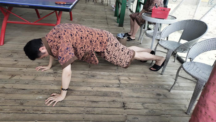 第二天早上,進行了激烈但友好的體育比賽團體活動。活動分為分組投籃比賽和乒乓球比賽,設置了得最后一名的團體將接受適當的懲罰。